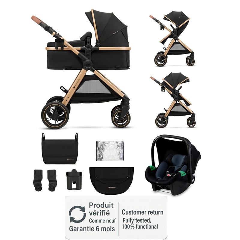 Kinderkraft ESME 3-i-1 klapvogn med Mink PRO I-Size bæresele, komplet rejsesystem, sammenklappelig, egnet fra fødsel til 4 år, farve sort.