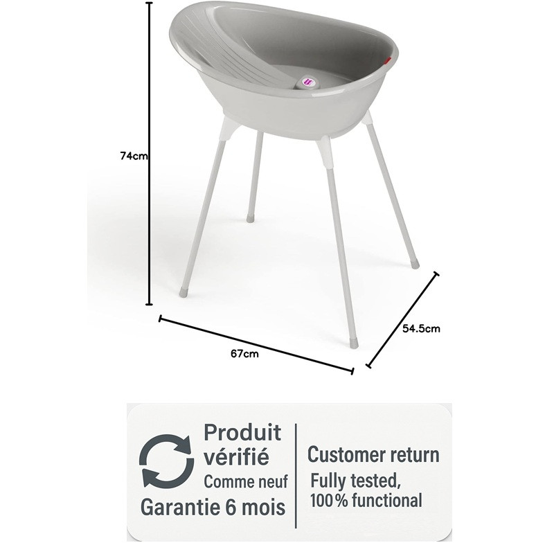 OKBABY Bella Bath Kit er en komplet løsning til badning af nyfødte (0 til 12 måneder). Det inkluderer det ergonomiske Bella-badekar og dets stabile stativ på fødder. Badekarret er designet til to badestillinger og har en indikator for maksimal vandstand. Det gulvstående design betyder, at badet kan udføres i voksenhøjde for ekstra komfort.