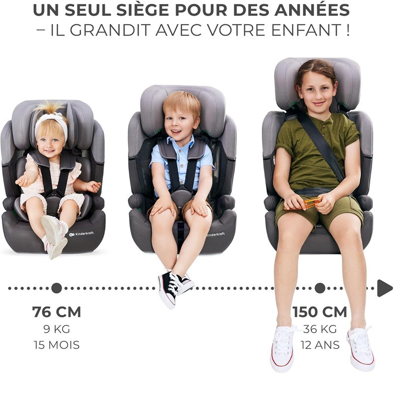 Kinderkraft COMFORT UP i-Size ist ein mitwachsender Kinderautositz, der für Kinder von 76 bis 150 cm (9 bis 36 kg) geeignet ist und Sicherheit und Komfort von 15 Monaten bis 12 Jahren bietet. Seine 11-fach verstellbare Kopfstütze, der 5-Punkt-Gurt und der abnehmbare Bezug machen ihn zu einer praktischen und zuverlässigen Wahl für Eltern.