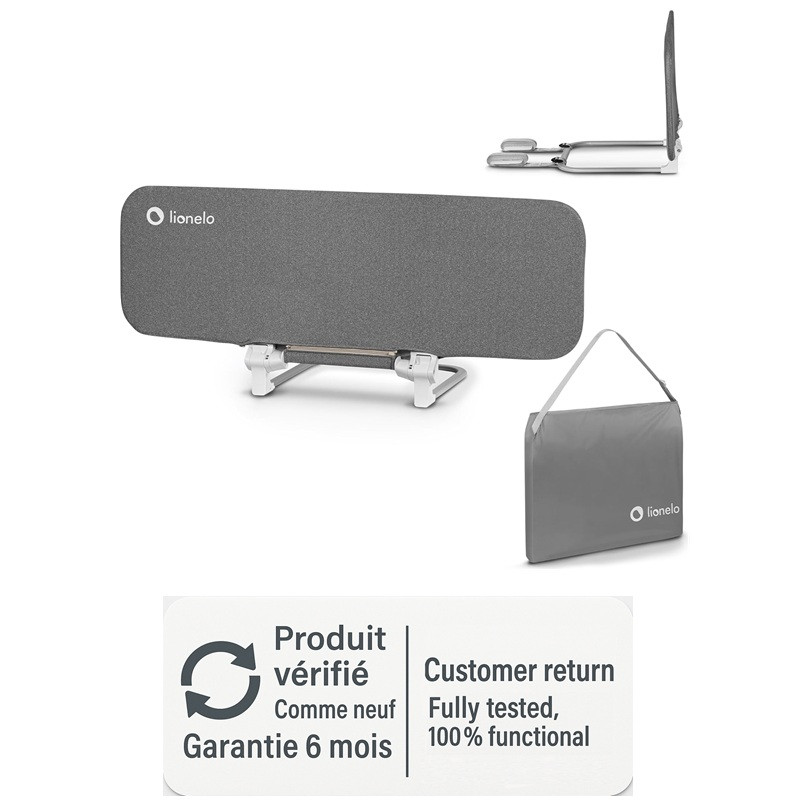 Producto verificado - Como nuevo - 6 meses de garantíaArtículo devuelto (retirada, embalaje dañado o faltante). Probado, 100% funcional. La Lionelo Eva es una barandilla de cama anticaída abatible 180° diseñada para proteger a su hijo mientras duerme. Con su robusto armazón de metal, su altura de 42 cm y sus cinturones de seguridad, garantiza estabilidad...