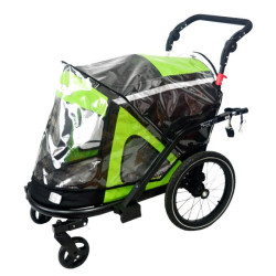 Rimorchio per bicicletta trasformabile in carrozzina per cani. Il peso massimo supportato è di 40 kg.