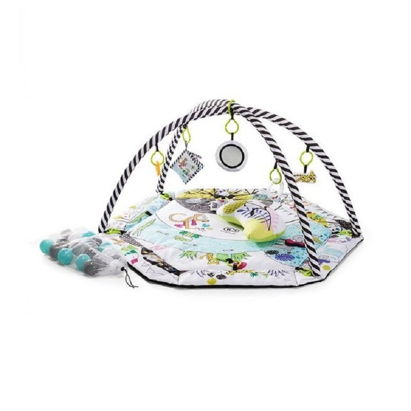 Funzione box, i lati possono essere sollevati e legati insieme, il che incoraggia ulteriormente il bambino a sollevare la testa, il collo e rafforza i muscoli della schiena e fornisce una maggiore sicurezza. Quando si muove sullo stomaco, il bambino affronta sempre un animale diverso. Inoltre impedisce alle palline di cadere durante il gioco.