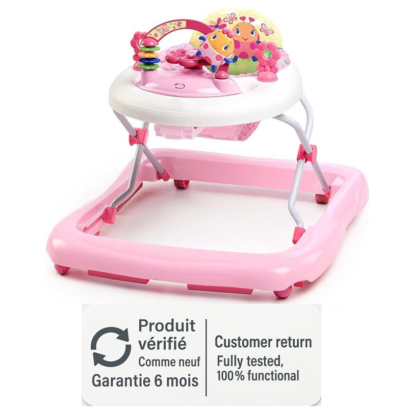Le Trotteur Bright Starts JuneBerry Delight Walk-A-Bout offre un double usage : il aide Bébé à faire ses premiers pas et sert de centre d'activités captivant. Idéal pour les petites filles, ce trotteur évolutif (3 hauteurs) inclut un plateau de jeu électronique amovible avec lumières et mélodies.