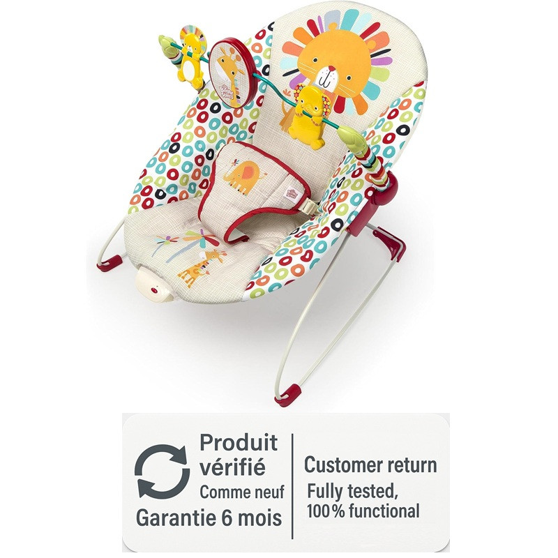 Dit lichtgewicht, draagbare wipstoeltje is geschikt vanaf de geboorte tot 9 kg (ongeveer 6 maanden) en verspreidt kalmerende trillingen om je kindje te kalmeren.
