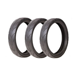 Rezervna pnevmatika za otroški voziček Bébé Confort High Trek, na voljo v dveh velikostih, odvisno od vrste platišča (3 kraki ali kovinski kraki). Izberite eno od dveh velikosti 312x52-250 (plastično platišče s tremi kraki) 12½ x 2¼ (platišče s kovinskimi prečkami) tip kolesa