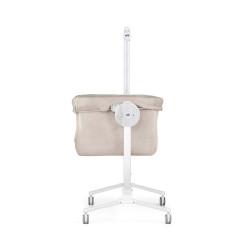 8 višin, odpiranje sprednje pregrade za sobivanje, položaj za preprečevanje regurgitacije, vodoravno gibanje zibelke za združljivost z vsemi vrstami postelj, funkcija nagibanja, 4 večsmerna kolesa, od katerih imata 2 zavore, trakovi za pritrditev na posteljo. Lastnosti: Nosilnost do 9 kg Teža: 10,9 kg. Dimenzije: 105 x 59 x 82/134 cm.