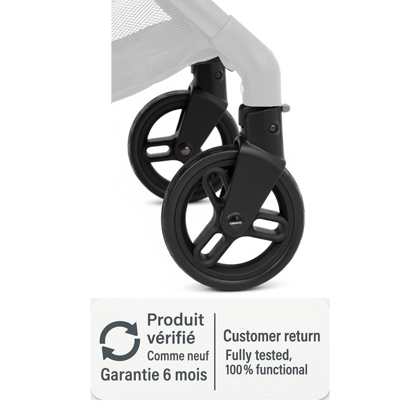 🔄 So m ny - Kontrollerad - 6 månaders garanti Produkt från en kundretur eller skadad förpackning, testad av våra tekniker och 100% funktionell. OBS: Försäljningen avser ENDAST de 2 bakhjulen på Graco Near2Me-barnvagnen, som säljs som reservdelar. Dessa hjul är idealiska för att ersätta slitna eller skadade hjul, vilket garanterar perfekt kompatibilitet...