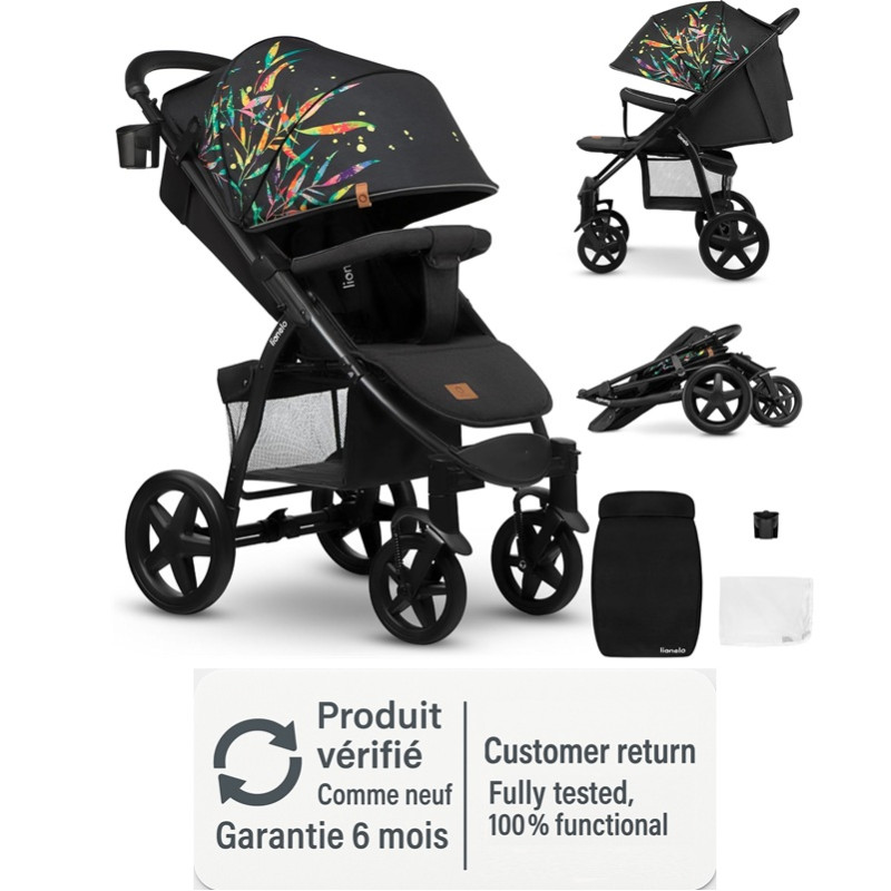 LIONELO Annet Plus-barnvagnen är utformad för att hålla länge och erbjuda maximal komfort. Den klarar en vikt på upp till 22 kg och ryggstödet går att luta helt bakåt, vilket gör den lämplig att använda från födseln (under uppsikt). Den levereras som ett komplett paket med fotpåsar, myggnät och mugghållare och är redo för alla årstider.