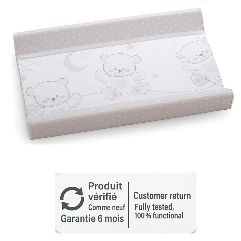 🔄 Produkt kontrollerad - med defekt - 3 månaders garanti Artikel returnerad (indragning, små defekter, skadad eller saknad förpackning). Testad, 100% funktionell. Nattou Softy skötbordsmatta 50x70 cm, taupefärgad. Synlig defekt under madrassen, ingen påverkan på användningen. Mjukt, tvättbart PU-skum.