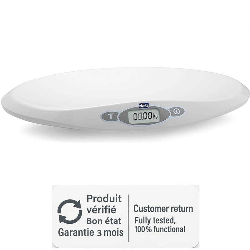 🔄 So m ny - Kontrollerad - 6 månaders garanti Produkt från en kundretur eller skadad förpackning, testad av våra tekniker och 100% funktionell. Denna digitala elektroniska babyvåg från Chicco (vit) ger dig ultraexakt tillväxtövervakning upp till 20 kg. Den har 3 viktiga funktioner: tarafunktionen (för att väga barnet med en handduk), stabilisatorn mot...